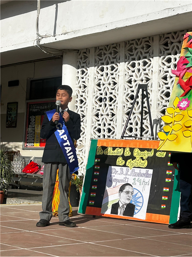 A special assembly was conducted today to celebrate Ambedkar Jayanti and Baisakhi. The students of Grade V presented a meaningful skit highlighting the need to abolish inequality and promote the values of equality, justice, and respect for all, as taught by Dr. B. R. Ambedkar.