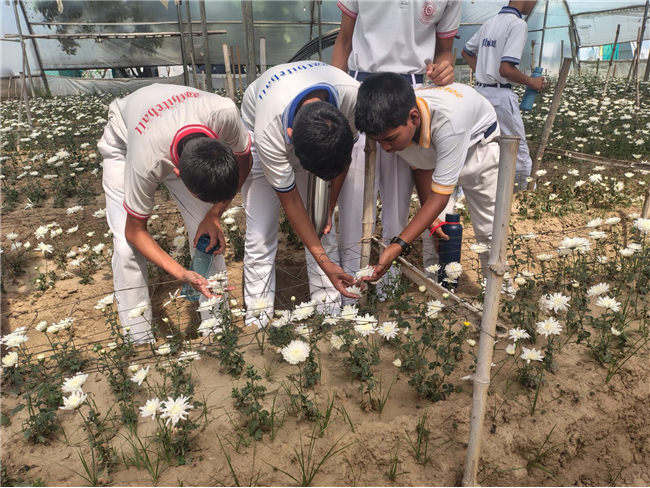 conditions in polyhouses. Students closely examined flowers such as lilies