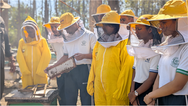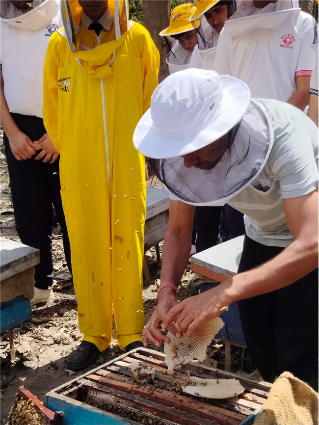 The students gained insight into the distinct roles of the queen, worker, and drone bees, along with the life cycle of bees and the systematic process of honey extraction. Emphasis was also laid on the safety protocols and equipment employed in beekeeping practices.