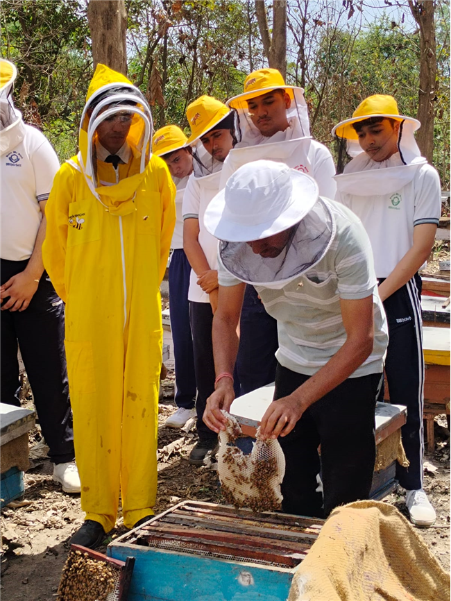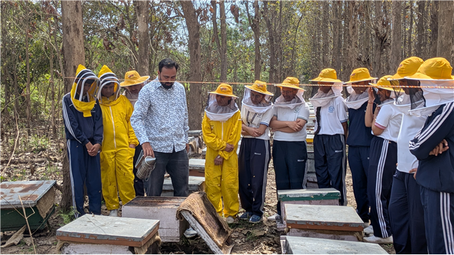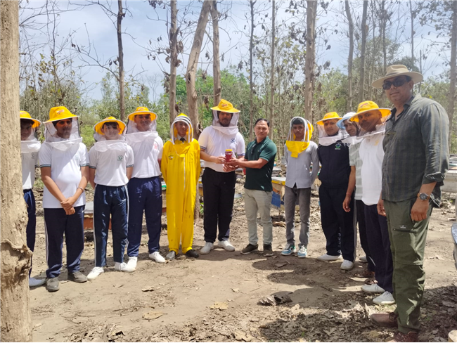 An educational visit to a bee farm at Pipal Paraw, was organized for the students of Grade 11 on 13th April 2026 with the objective of imparting experiential knowledge about apiculture and the ecological significance of bees.