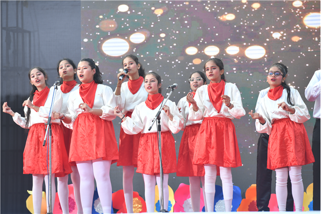 The Grades 6 and 7 presentation, “Celestial Ties”, based on the immortal friendship of Krishna and Sudama, deeply moved the audience and emphasized the values of friendship and human bonds.